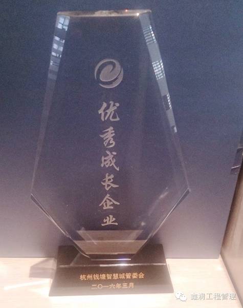 2016年3月16日,浙江鑫潤榮獲杭州錢塘智慧城管委會頒發(fā)的“2015年度優(yōu)秀成長企業(yè)”榮譽稱號。